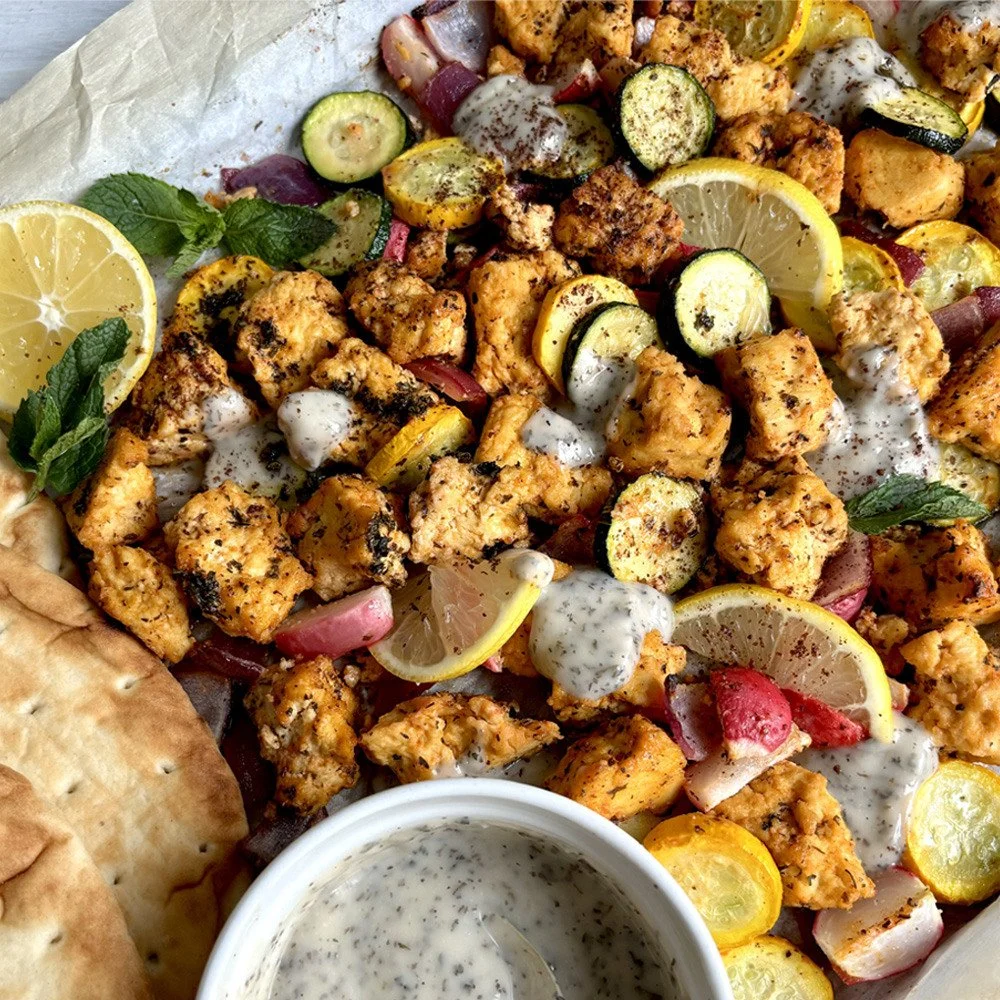Quoi de mieux qu’un repas qui se fait entièrement sur une plaque pour les soirs de semaines chargés? Cette plaque de tofu au yogourt et à la menthe est tellement savoureuse, elle deviendra la recette préférée de toute votre famille!